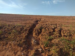 À margem da serra, na parte desvegetada havia vários processos erosivos do tipo ravinas, provocados principalmente pelas chuvas recentes, causando carreamento de sedimento erodido da área gradeada para os leitos dos córregos Piraputanga e Benfica, os quais possuem o início de suas bacias de drenagem na base da serra de Maracaju. Além disso, verificou-se grande quantidade de valas escavadas na área gradeada, que foram construídas para enterrar os restos vegetais das leiras (amontoados de restos vegetais).
