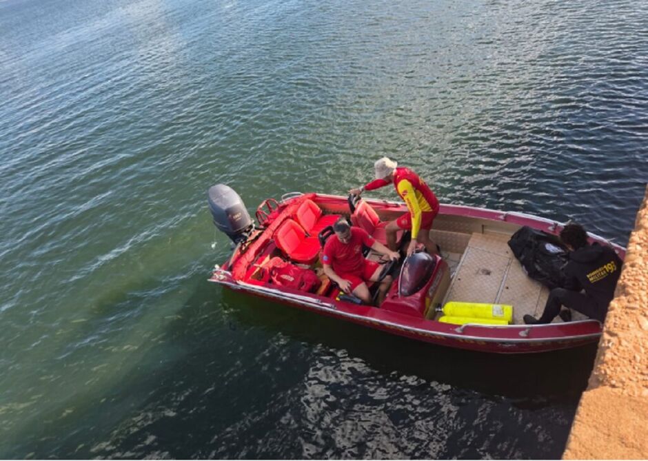 Corpo de Bombeiros fazem busca por um jovem de 18 anos, que não teve o nome informado, e desapareceu nas águas da prainha na região da Cascalheira, em Três Lagoas, na tarde desta quinta-feira (26).