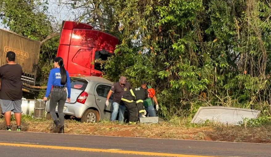Um homem morreu e uma mulher ficou ferida em colisão envolvendo um carro de passeio e uma carreta na tarde deste domingo (14), na BR-267, em Bataguassu. A mulher foi socorrida à Santa Casa da cidade, conforme o Cenário MS.