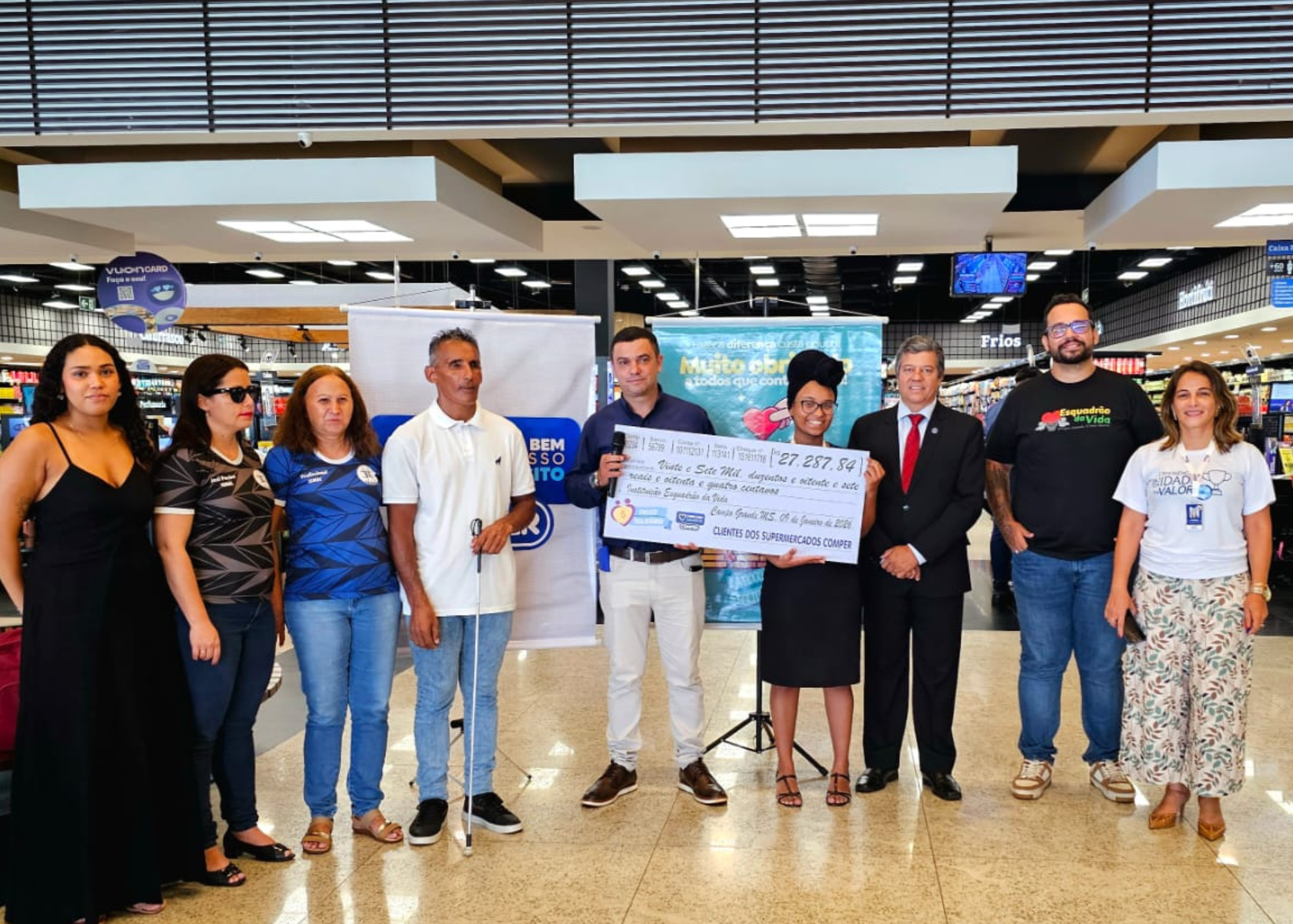 Três entidades beneficentes de Campo Grande receberam em janeiro, a quantia total de R$ 149.846,68. A soma foi arrecadada por meio do projeto Troco Solidário dos Supermercados Comper e Fort Atacadista, que incentiva clientes a doarem o troco de suas compras a instituições de assistência social. R$43.481,61 foram doados por meio da venda de sacolinhas e o restante com a doação do troco. A cerimônia de entrega foi feita no mês de janeiro e refere-se ao arrecadado nos meses de outubro a dezembro de 2025. O valor arrecadado foi R$15.346,88 a mais que o mesmo período do ano passado, o que representa 11,41%.