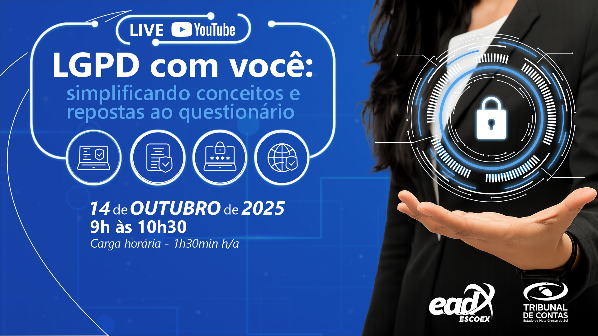 O Tribunal de Contas do Estado de Mato Grosso do Sul (TCE-MS) dá mais um passo importante no projeto “Proteção de Dados e Integridade Pública: Projeto de Apoio Técnico aos Jurisdicionados”. Nesta terça-feira (14), das 9h às 10h30, será realizada uma live especial com o tema “LGPD com você: Simplificando conceitos e resposta ao questionário”, marcando o início da 3ª etapa do Projeto.