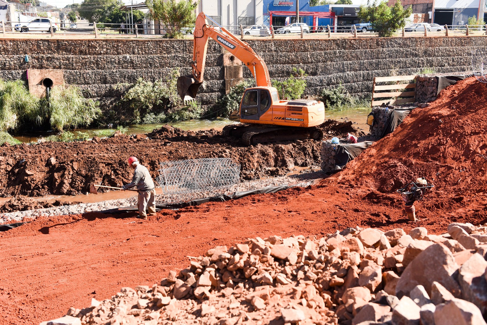 Com investimentos de mais de R$ 20,9 milhões, as obras de contenção de enchentes e erosões no Rio Anhanduí, na Avenida Ernesto Geisel, seguem dentro do cronograma, com 50% do serviço já executado. A previsão é de que tudo esteja concluído até fevereiro do próximo ano. Além da importância do ponto de vista de infraestrutura da região, o projeto vai garantir mobilidade com segurança na via, que faz a ligação das regiões Norte e Sul de Campo Grande.
